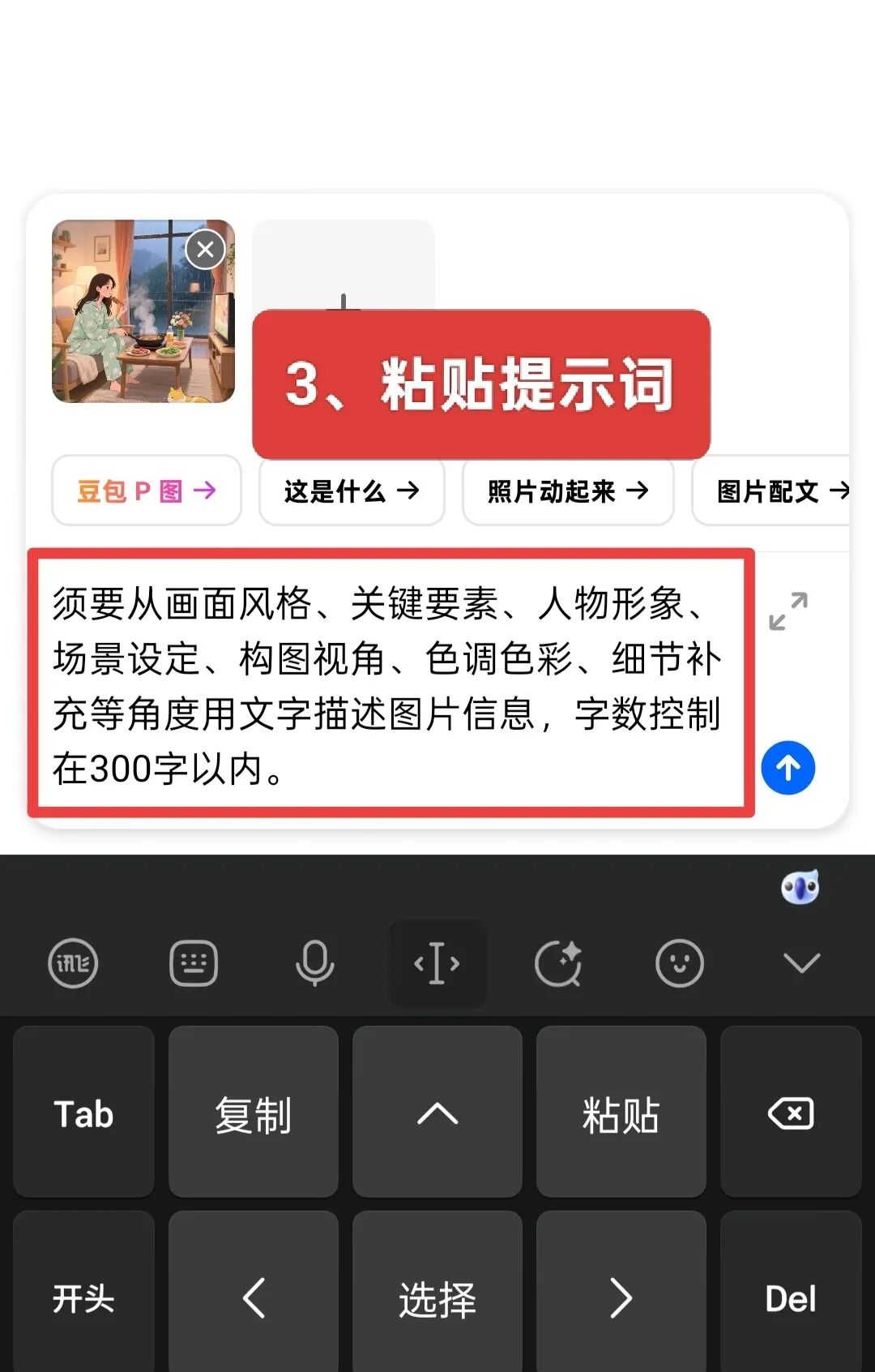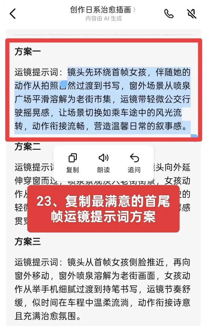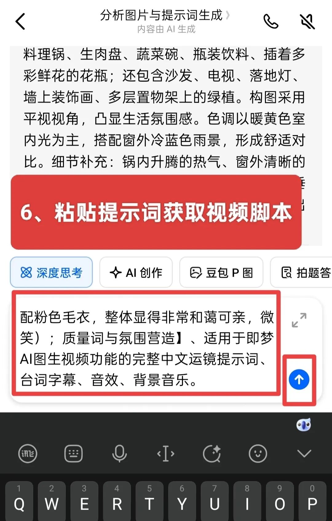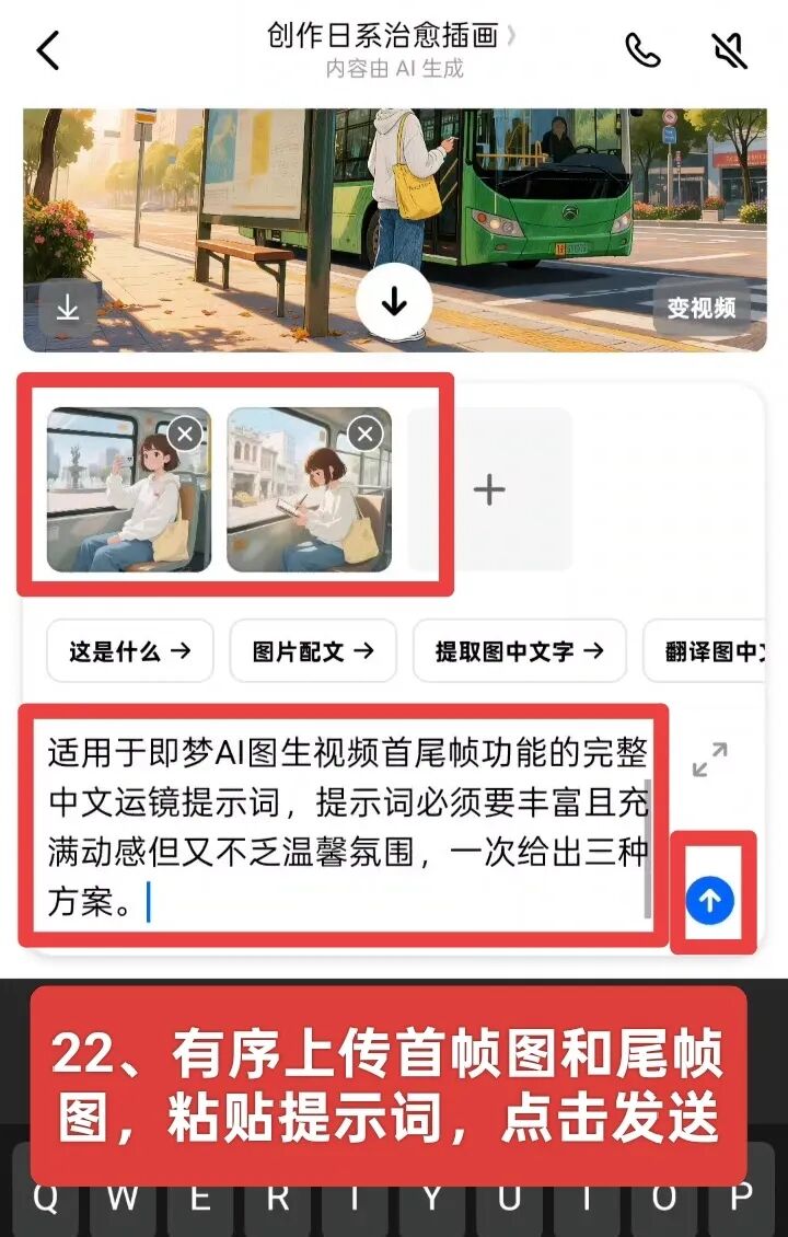 🔹 获取提示词方案:打开【豆包】→ 有序上传首帧图和尾帧图(记住! 顺序一定不能错哦!) → 打开【深度思考】模式 → 输入下面这段提示词 → 点击发送获取方案;
