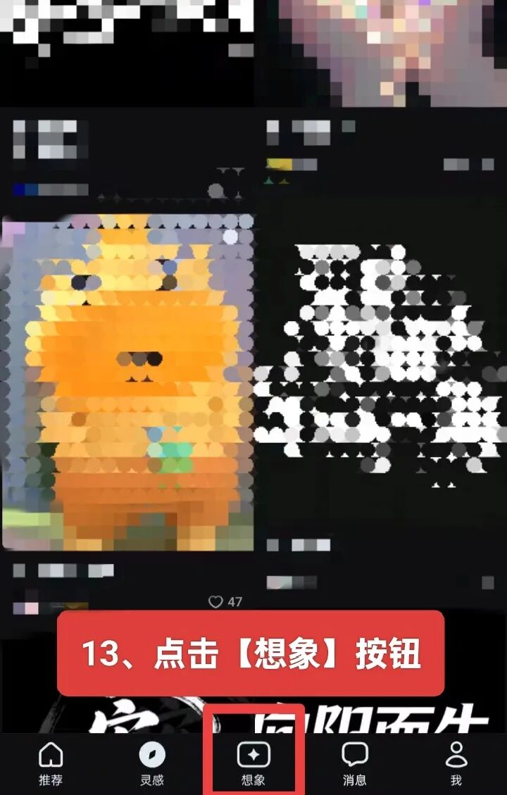 ✔ 进入操作页面:打开即梦AI,在下方导航栏中找到【想象】按钮;