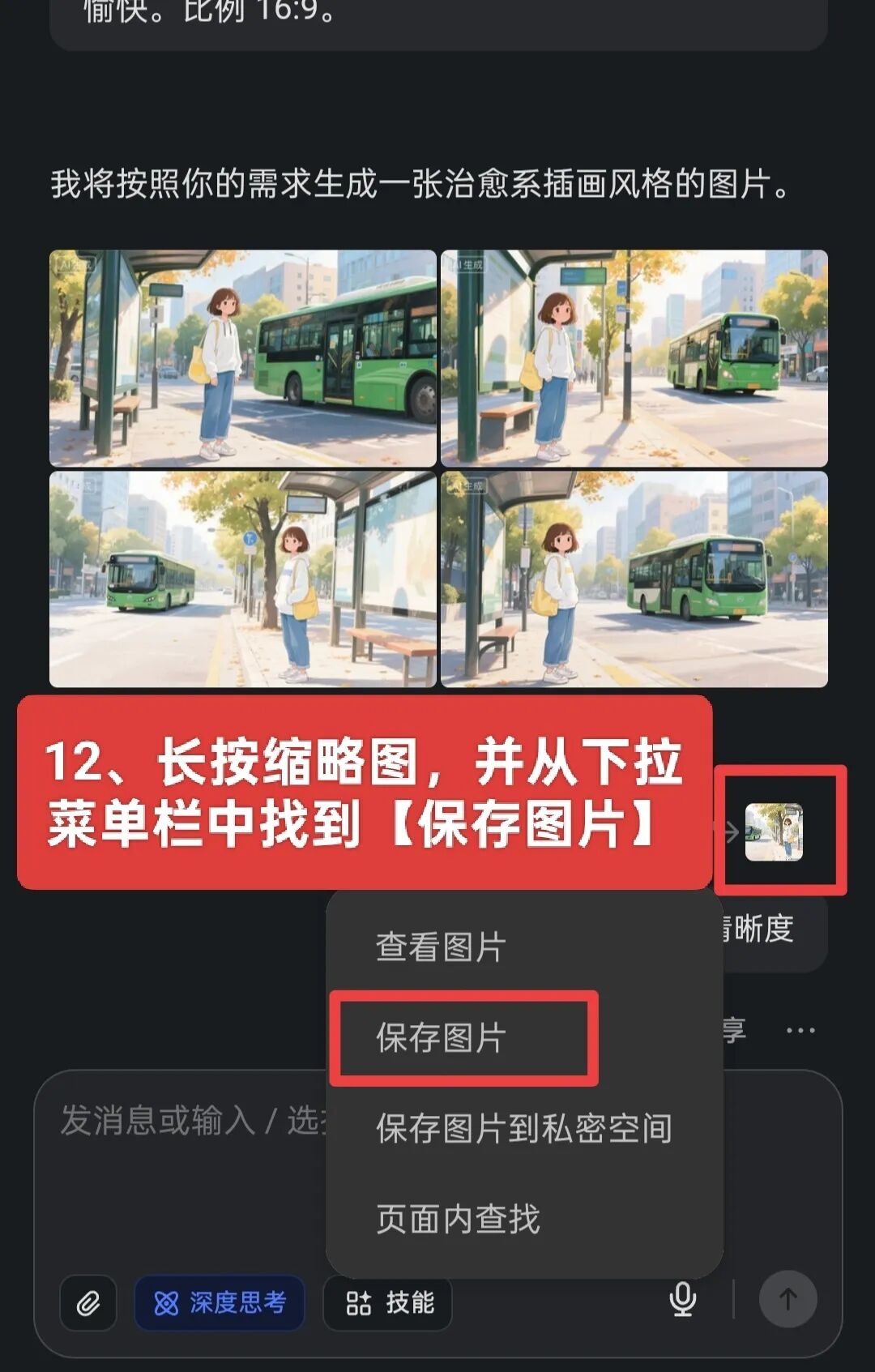 🔹 保存图片:长按缩略图,从下拉的菜单栏中找到并点击【保存图片】。