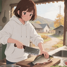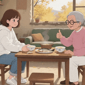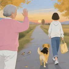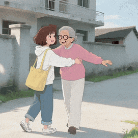 ➡ 设计一个1分钟左右的vlog AI视频脚本,统一画风为治愈系插画风格,内容是关于一位女孩周末去乡下探望外婆和做饭。脚本包括:镜号、画面简介【10个字以内】、适用于即梦AI文生图功能的完整中文提示词【包括但不限于:画风(统一为治愈系插画风格);充满张力的拍摄手法;主角形象(女孩形象为18岁,中国籍,白皙的肤色,清纯的气质,五官精致,有着一双棕色瞳孔的大眼睛,深棕色短发及肩,她身穿纯白色长袖卫衣,蓝色宽松牛仔裤和白色帆布鞋,背着一个淡黄色简约可爱的帆布包;外婆形象为80岁,中国籍,一头灰白色头发并扎着小丸子头,戴着黑色框的眼镜,身穿白色休闲裤配粉色毛衣,整体显得非常和蔼可亲,微笑);质量词与氛围营造】、适用于即梦AI图生视频功能的完整中文运镜提示词、台词字幕、音效、背景音乐。