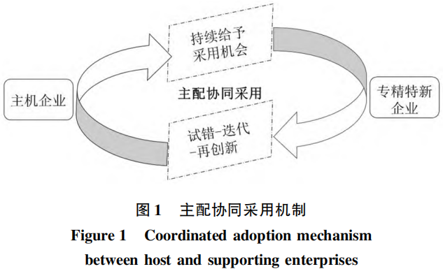 关键零配件国产替代“冷启动悖论”的矛盾焦点在于市场采用。 复杂产品系统(如盾构机、高铁和飞机等) 实现国产替代核心在于突破技术研发的 “ 从无到有” 问题[13],市场应用与技术迭代可由国家意志直接推动。 但关键零配件因与主机企业存在技术共生关系,其实现国产替代逻辑则更依赖“性能验证 - 工艺迭代”的渐近性工艺提升。专精特新企业技术迭代必须基于主机企业在实际应用中积累的参数反馈,而其持续研发的资金保障又需规模化商用后的利润反哺[12],由此形成“无应用难迭代 - 未迭代难应用”的僵局。破解悖论的关键在于构建主配协同采用机制(如图1所示),即通过构建“研发 - 应用 - 反馈 - 再研发”供需良性循环,将首批种子用户(主机企业)的持续采用转化为专精特新企业技术工艺升级动能。
