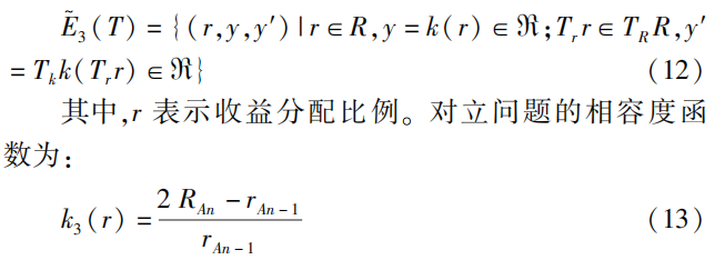 其中,①在构建相容度函数时,仅考虑某一方成员的收益分配比例变化即可。因为当出现某一主体的收益分配比例增加时,必然导致其他成员的收益分配比例减少。②当0<k<1时,问题处于相容状态;当k=1时,问题处于理想状态;当k<0时,问题处于不相容状态;当k>1时,说明其他方未达到分配预期,问题仍处于不相容状态。