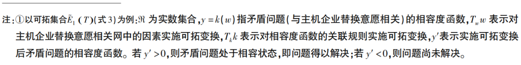 (2) 可拓集合。存在论域 W 表示主机企业的替换意愿,关于 W 的可拓集合表示为: