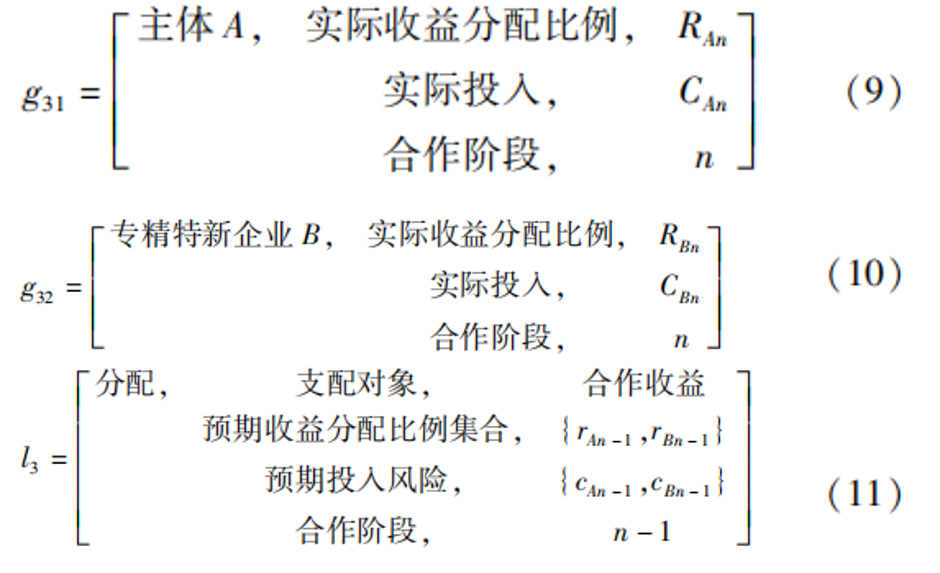 其中,创新主体 A 对收益分配比例的预期是基于上一合作阶段(本文以n-1阶段表示)投入cAn-1而产生的,表示为rAn-1,且