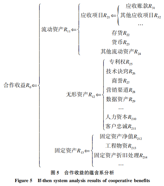 合作收益蕴含系实质上是各创新参与主体关于收益种类的物元集合。根据创新共同体中各参与主体可能获得的收益项目,构建关于成员 M 的合作收益蕴含系R0,如图5所示。