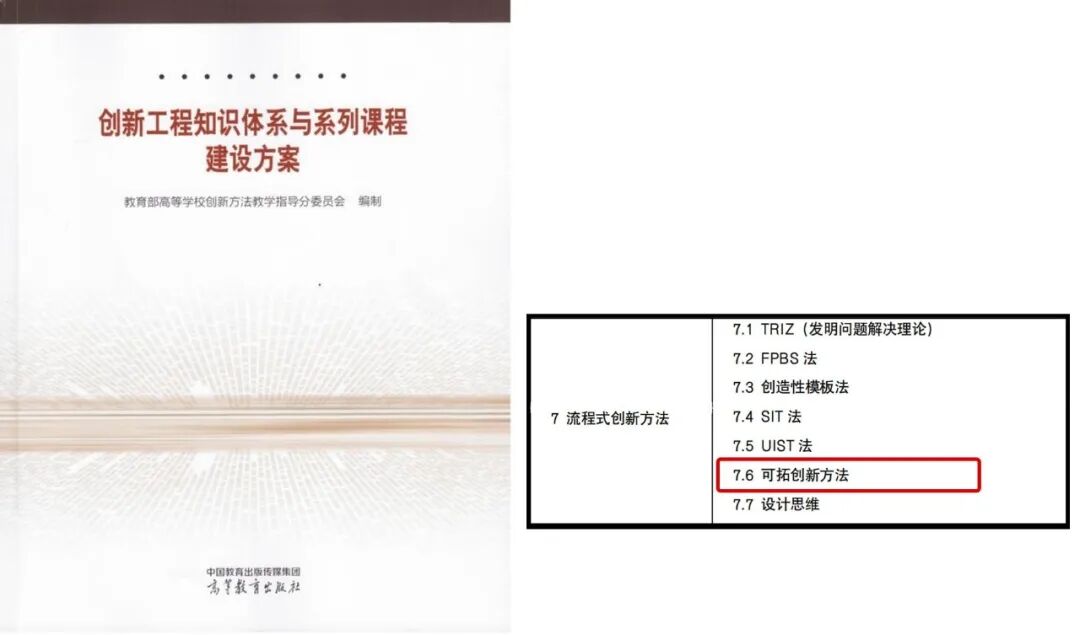 目前,可拓创新方法入选教育部高等学校教学信息化与教学方法指导委员会创新方法指导分委员会组织编写《创新工程知识体系与系列课程建设方案》。